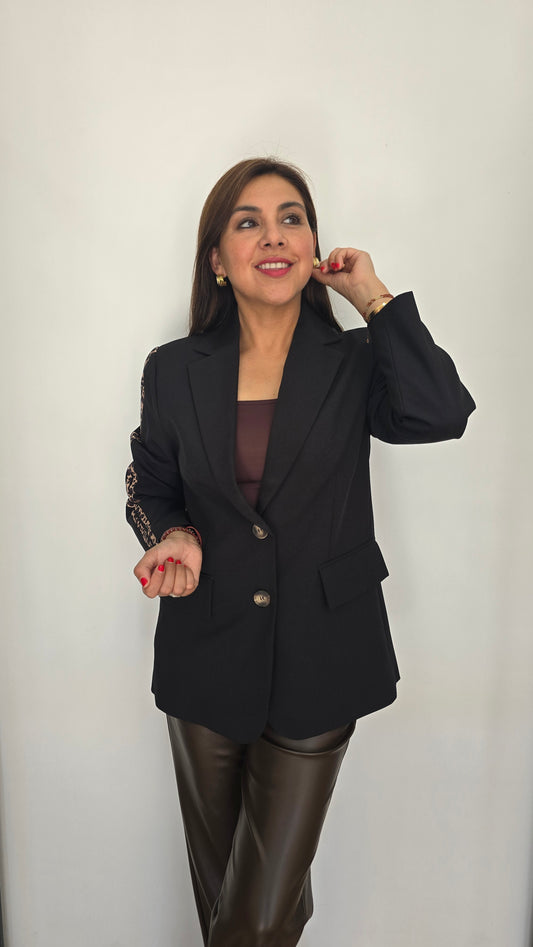 Blazer Negro Aplicación Animal Print