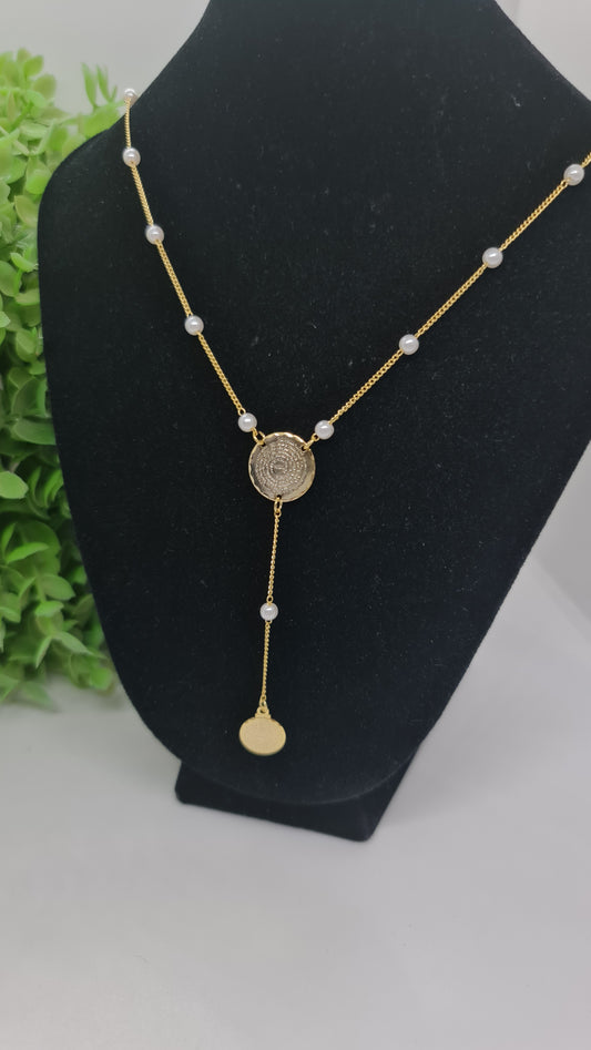 Cadena dorada con dije central de padre nuestro