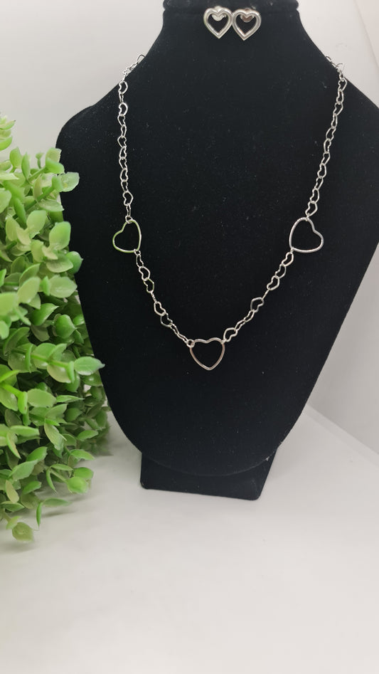 Set de cadena plata de corazones entrelazados + aros de corazones