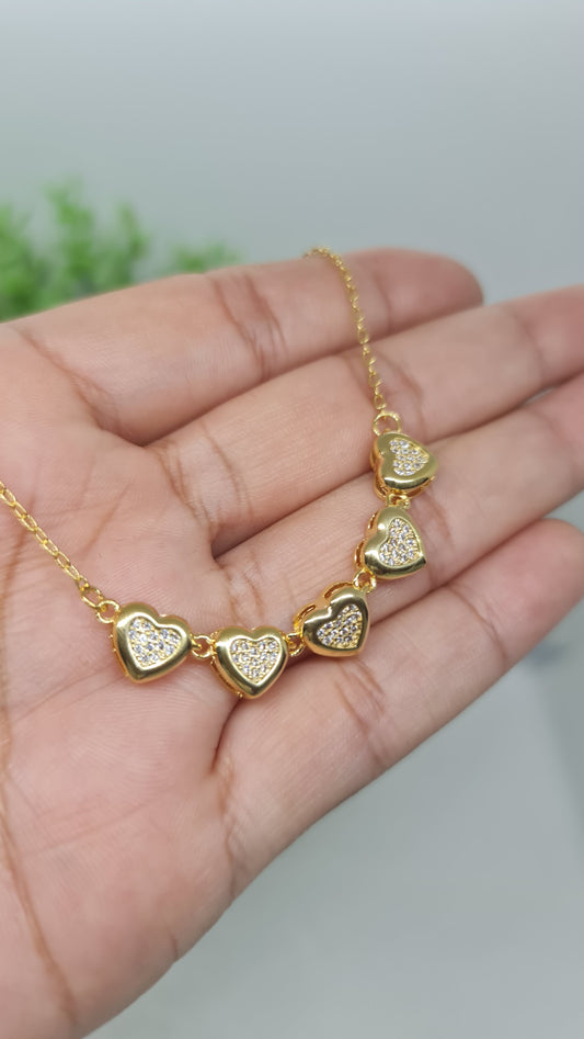 Set cadena de 5 corazónes de piedras brillantes + aros de circón