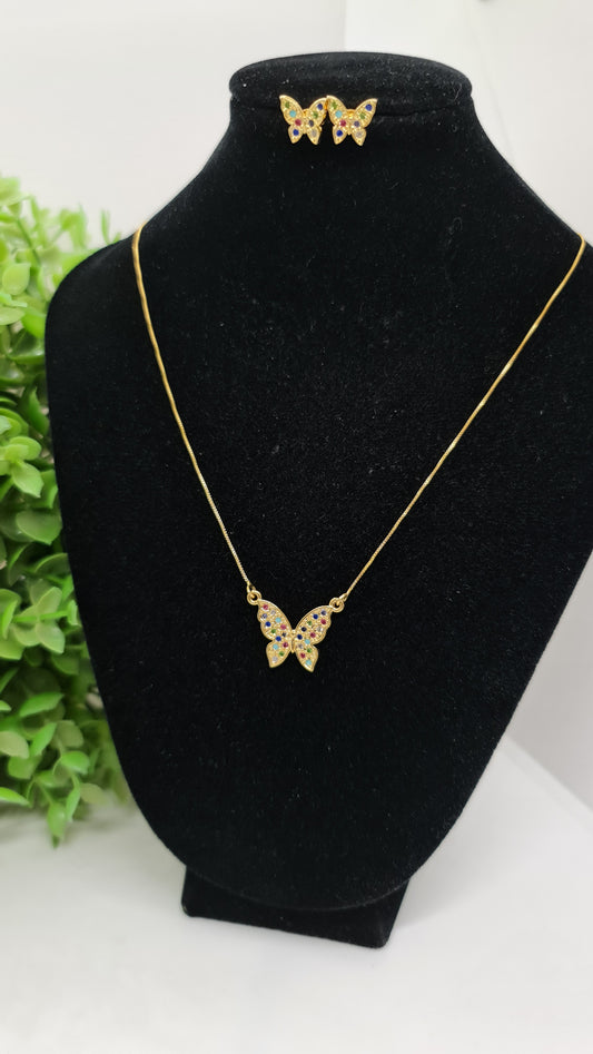 Set cadena mariposa de circones multicolores + aros